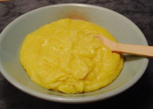 Sausage (or bacon): take one-quarter pound of sausage or bacon. Chop the sausage or bacon into small little squares. Put a little oil into a saute pan, and saute the sausage or bacon until it is well done. Set aside. At the finish of the polenta, off heat, stir in the sausage or bacon, and a half cup of parmesan. Adjust for salt and pepper and serve. Or, as above, just serve the browned sausages, whole, on the bed of polenta. Bolognese: this is almost everyone's favorite. Put the finished polenta in the warmed bowl and top it with bolognese sauce. (see bolognese sauce). You will quickly see why. Mushroom ragu: make the mushroom ragu (see mushroom ragu) and just put the ragu on top of the finished polenta. A great vegetarian dish. Other presentations (cold): put the finished polenta onto a board, and shape it as it cools, to a thickness of about two inches. Let it set for an hour or so. It can then be refrigerated and kept for a couple of days. The cold polenta can be sliced into convenient size pieces, and then grilled, or put under a broiler to lightly brown, and served as a perfect side dish to a hearty stew. Or just butter it and eat it. Even top with cinnamon. INSTANT POLENTA: This variation will save time and elbow bending. You will find that instant polenta has a creamier, smoother taste and feel to the tongue. Regular polenta has more texture. Use the same ingredients as above, using the instant yellow cornmeal variety. Bring the water to a boil. Add the salt. Add the cornmeal slowly, as above, whisking while you add. When thoroughly mixed and stirred, reduce the heat to low. Cover. Keep at a lightly bubbling simmer. Stir fairly often. The mixture should thicken in about fifteen minutes. (test as above). Uncover. Stir it for a minute, and then finish and ladle and serve.