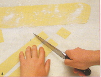 for cappelletti: To make tortellini, or cappelletti, take freshly made pasta sheets (see how to make fresh egg pasta), still moist, and using a fluted wheel (or a knife) cut the pasta into either 1 1/2-inch or 2-inch squares, to your taste. Put 1/4 to 1/2 teaspoon of filling into the center of the square. Moisten the edges of the pasta square.